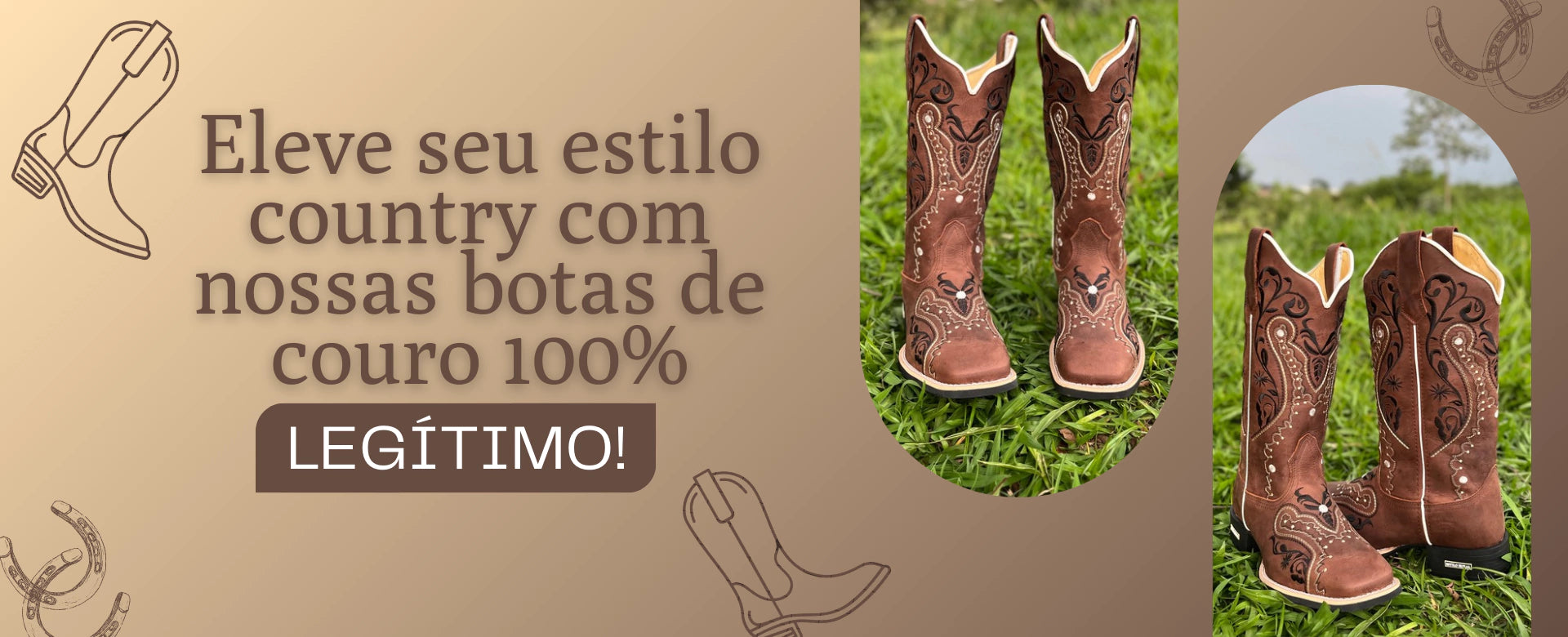 Texana Amora 2.0 - Couro Horse Nescau/Laser Bordado Cruz Glitter Preto