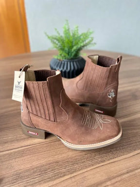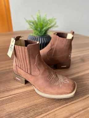 Botina Felipe - Couro Horse Nescau/ Bordado Florão Bege
